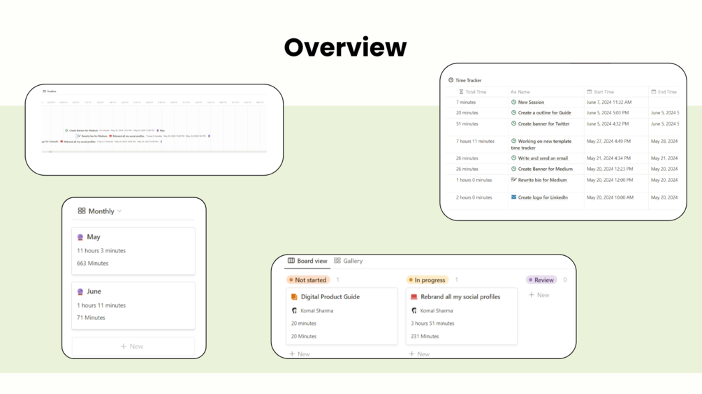To prevent this situation, I’ve created a Time Tracker Notion Template! You can track the minutes and hours you spend working daily and monthly with the help of it.